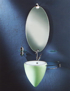 Available in several colours, white, aquamarine, violet, metallic silver, express all his elegance in the mirror chromed version, where the circular shapes exalt and reflex the light and the surrounding images.
