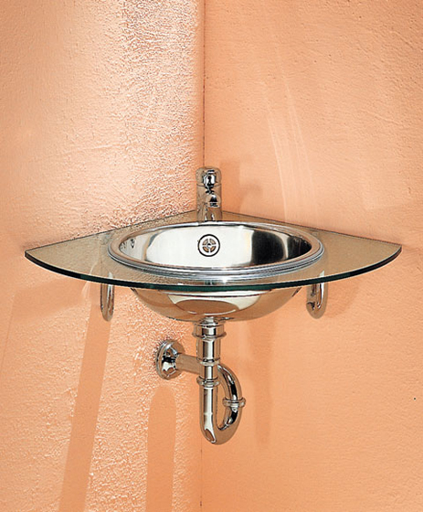 porcelainized steel, fixing in the wall or in the corner, with or without transparent crystal glass top, give you many furnishing solutions.