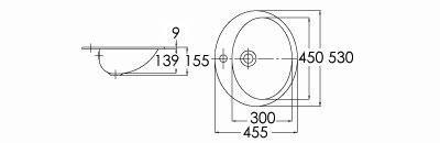 Oval, built-up washbasin with ingrated tap hole. Two or three tap holes available on request.