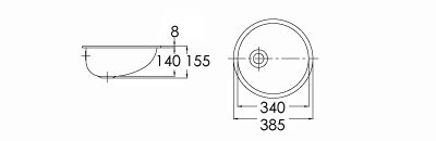 Lavabo circolare d'arredo diametro cm. 43 con o senza foro TP. Installazione: soprapiano e sottopiano.