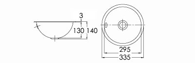 Lavabo semisferico diametro cm. 38 con foro TP. Installazione: soprapiano e sottopiano.
